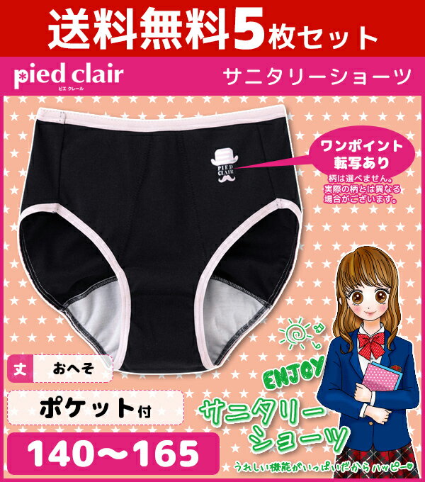 送料無料5枚セット ジュニアレディース pied clair ピエクレール サニタリーショーツ ポケット付きタイプ グンゼ GUNZE パンツ 生理用 子供下着| ショーツ ジュニア 下着 女児ショーツ 女の子 生理用パンツ 女児 サニタリー こども 子ども下着 生理ショーツ